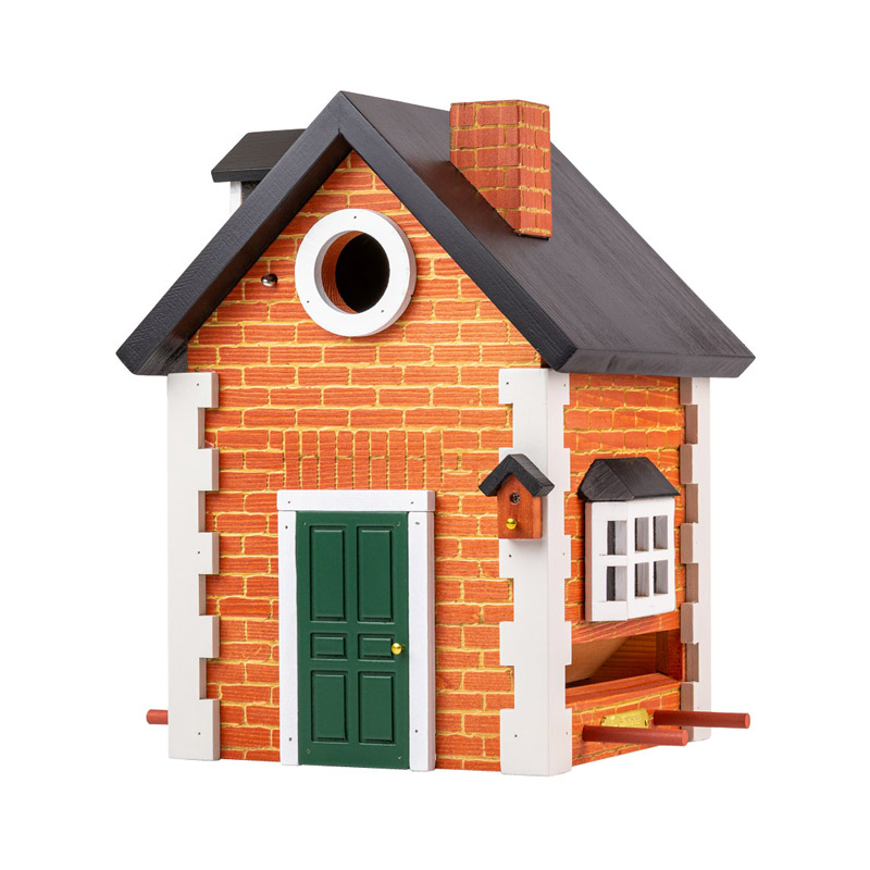 Multiholk Mursten kombinerer et klassisk fuglehus med en træfuglefoderautomat i ét gennemtænkt design. Foderautomaten er velegnet til almindelige frøblandinger og sikrer en hygiejnisk fodring, da fuglene sidder udenfor og får adgang til foderet – hvilket mindsker risikoen for smittespredning. Ventilationshuller hjælper med at regulere temperaturen, og indvendige trin gør det lettere for ungerne at komme ud af huset. En dekorativ og stemningsfuld detalje i haven, der inviterer til naturoplevelser for både børn og voksne.